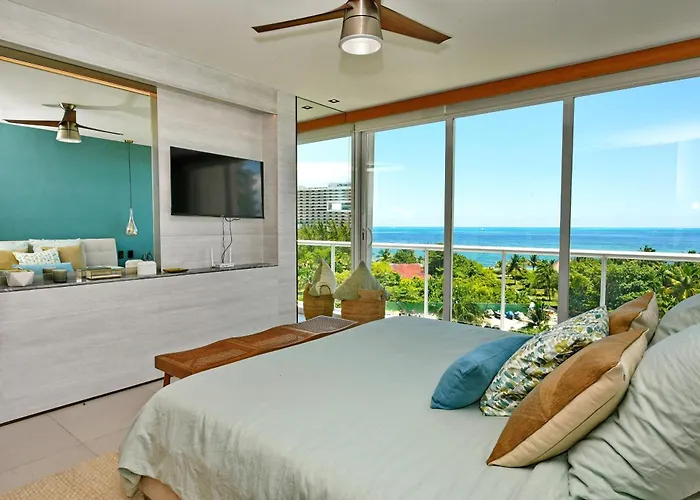 El Beachfront Apartment Blue Vista Cancún, que incluye una terraza, se encuentra a tan solo 5 minutos a pie del Gran Puerto Juarez. Además de servicio de cambio de divisas, este apartamento de 85 m^2 ofrece a sus huéspedes vistas a la piscina.